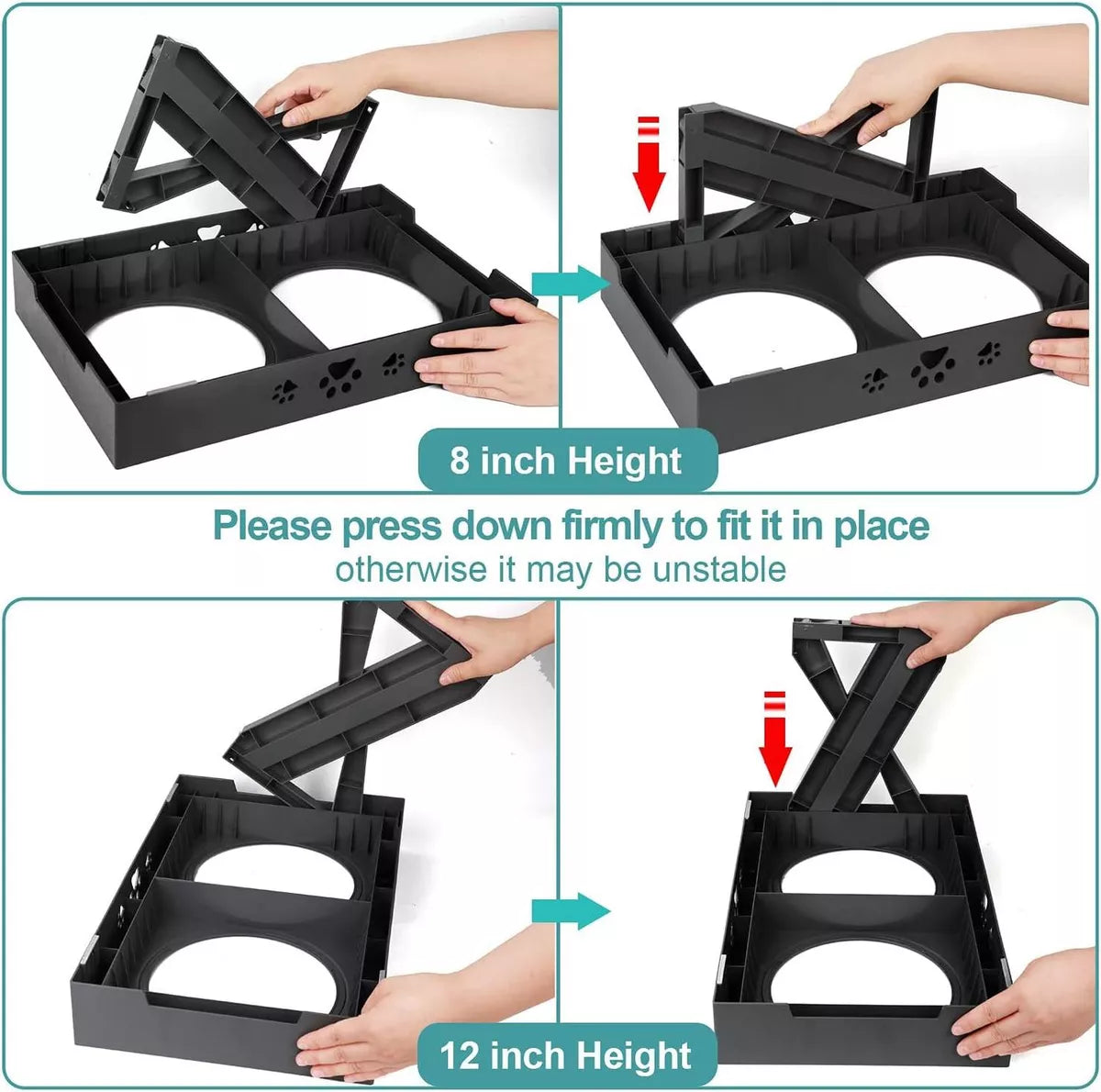 EXPERIENCIA DE COMIDA SALUDABLE: El plato elevado de comida para perros proporciona una posición de alimentación saludable que ayuda a la digestión.Reduce el estrés articular: el uso de un comedero elevado para perros ayuda a reducir el estrés en las articulaciones y los huesos; esto hace que nuestros cuencos elevados para perros sean perfectos para perros más maduros.Cuenco doble de acero inoxidable 304, seguro de grado alimenticio, no tóxico, sólido y duradero, buen brillo sin ninguna adición, deja que las mascotas coman más a gusto.Se puede lavar directamente para evitar el crecimiento de residuos. Una vez lavado, el residuo no permanecerá. La base está elevada para mejorar la postura de comer, altura ajustable, reduce la presión sobre la columna cervical, bueno para el desarrollo de huesos del perro.Tres configuraciones de altitud: reduce el estrés en las vértebras del cuello, adecuado para perros de todos los tamaños.Esta mesa se puede utilizar de pequeño a grande.Incluye dos patos de alta capacidad (1.3 Litros), perfectos para el agua y comida de tu mascotaAlturas: 7.2cm, 18.5cm y 28.8cm.Platos de acero inoxidable anti hongos.Resistente al agua y a la humedad.