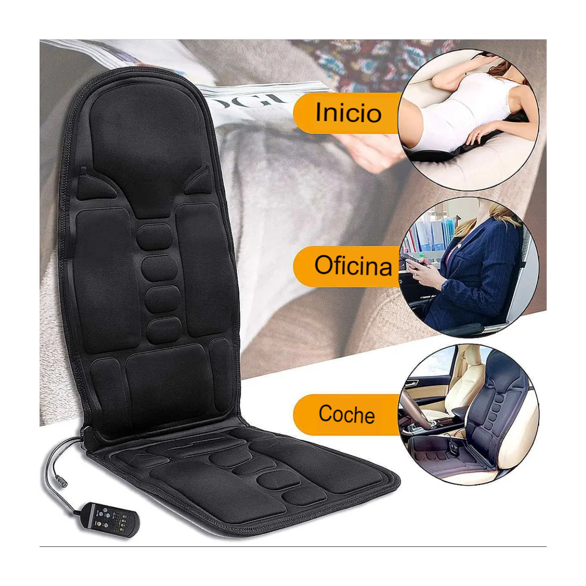 Disfruta de un alivio instantáneo y personalizado con nuestro Masajeador De Auto Vibratorio Con 5 Niveles, diseñado con cuidado para proporcionar un masaje vibratorio rejuvenecedor en diferentes áreas del cuerpo. Con 5 niveles, incluyendo tres modos vibradores y dos niveles de fuerza ajustable, este masajeador es la solución perfecta para promover la circulación sanguínea, mejorar el metabolismo como aliviando el dolor muscular.- Diseño Ergonómico de 5 Niveles: Con modos vibradores específicos para hombros, cintura, red neural de las piernas, puntos y músculos, este masajeador ofrece una experiencia de masaje personalizable para adaptarse a tus necesidades.- Promoción de la Circulación Sanguínea: Diseñado para mejorar la circulación sanguínea humana, este masajeador ayuda a aliviar la tensión y a revitalizar los músculos, promoviendo una sensación general de bienestar y salud.- Adaptador Automático Incluido: Compatible con cualquier asiento, el sistema de fijación garantiza que puedas disfrutar de tu masaje en el auto o en casa. El adaptador automático facilita la conectividad para una experiencia de masaje sin complicaciones.- Intensidad Variable: Ajusta la intensidad según tus preferencias personales y disfruta de una terapia de calor relajante para aliviar aún más la tensión y mejorar los beneficios del masaje.- Velocidad Ajustable: Maneja fácilmente todas las funciones con el mando a distancia multifunción, que incluye control de velocidad (alto o bajo), brindándote un control total sobre tu experiencia de masaje.
