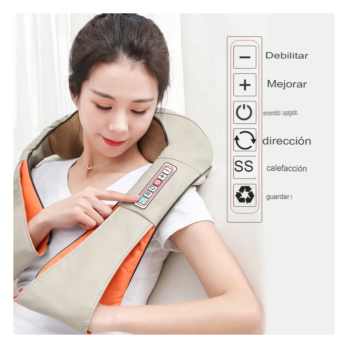 Experimenta el máximo confort y relajación con nuestro Masajeador Eléctrico para Espalda, Hombros y Cuello. Nuestro masajeador ofrece una avanzada función de calentamiento que transfiere calor a los músculos, ligamentos de la espalda, mejorando así la circulación sanguínea. Con modos de intensidad ajustables (bajo, medio, alto), puedes personalizar la presión según tus necesidades, proporcionando un alivio efectivo para tus dolores o molestias. - Masaje de Calentamiento Infrarrojo: El masaje con función de calentamiento infrarrojo crea un efecto de compresa caliente, ofreciendo un alivio adicional y una sensación de relajación profunda.- Material de Piel PU de Grado Superior: Fabricado con piel PU de alta calidad, este masajeador tiene un tacto suave y agradable para una experiencia de masaje confortable.- Doble Uso: Equipado con dos líneas eléctricas, este masajeador ofrece la conveniencia de disfrutar de un masaje tanto en casa como en el coche, brindando comodidad dondequiera que estés.- Control de Seguridad de Alta Temperatura: Con un control de seguridad de alta temperatura, puedes disfrutar de tu masaje con total tranquilidad, sabiendo que estás protegido.- Diseño de Red de Doble Capa: El diseño de red de doble capa garantiza resistencia al desgaste y alta calidad, asegurando una experiencia de masaje duradera.